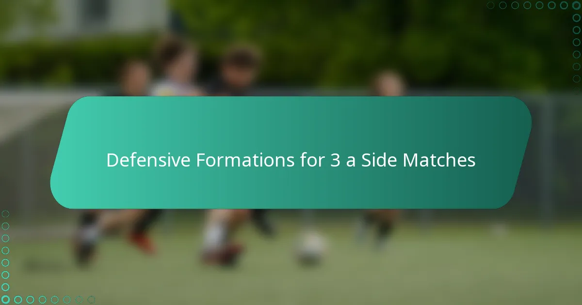 In 3 a side matches, defensive formations are crucial for maintaining structure and balance on the field. Key formations include the 1-2, 2-1, box, diamond, and flat formations, each offering unique strengths and weaknesses depending on the game situation.