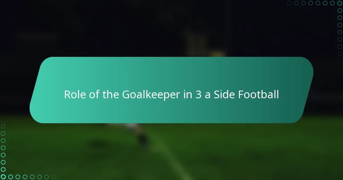 The goalkeeper plays a crucial role in shaping team tactics in 3 a side football by influencing both defensive and offensive strategies. Their ability to make quick decisions, communicate effectively, and support outfield players can significantly impact the game flow and overall team performance.