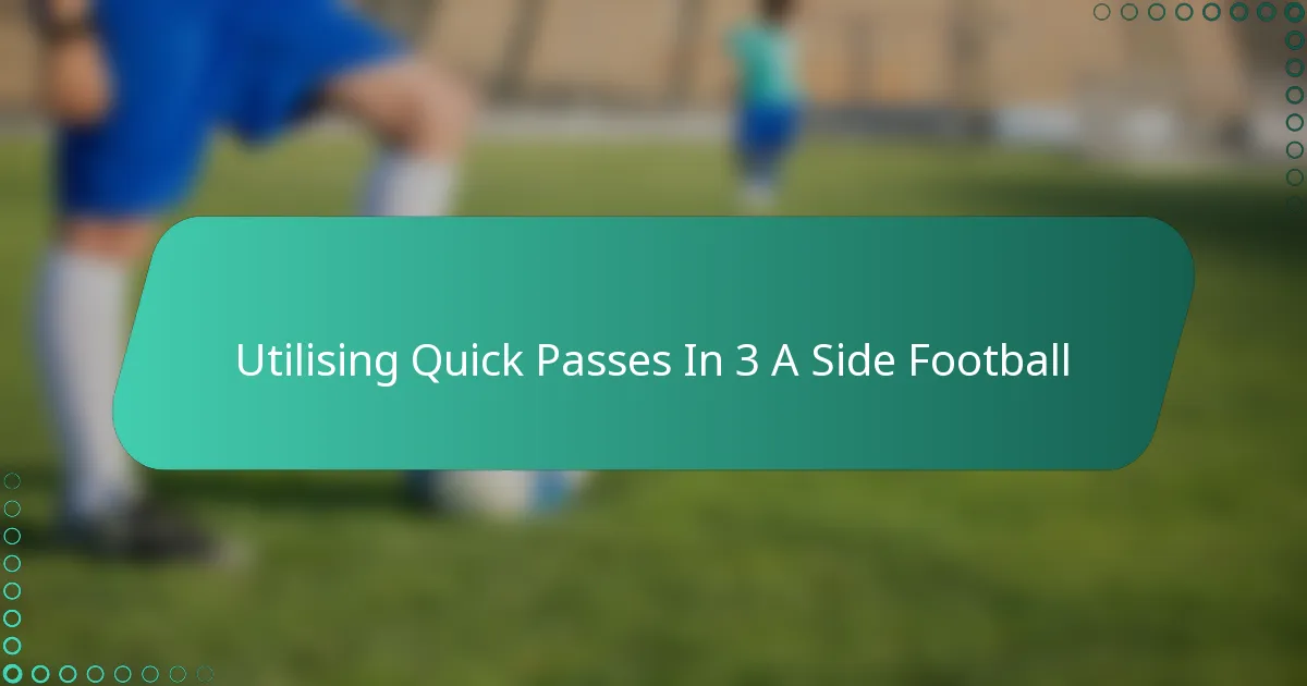 Quick passes in 3 a side football are essential for maintaining possession and creating scoring opportunities in the limited space of small-sided games. By focusing on communication, timing, and spacing, players can enhance their teamwork and decision-making, leading to rapid ball movement that disrupts the opponent’s defence. Mastering this technique not only increases the tempo of the game but also improves a team’s chances of success on the field.